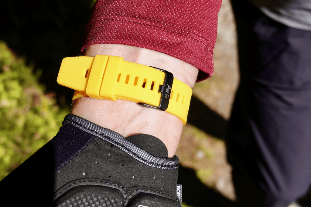 Mit ihren 61 g ist die Air’n Outdoor Theia Eclipse eine echte Leichtgewicht-Uhr, was sie ideal für lange Touren macht, bei denen jedes Gramm zählt. Auch das kompakte Design trägt dazu bei, dass sie angenehm am Handgelenk sitzt und nicht stört, weder beim Klettern noch beim Wandern oder Biken.