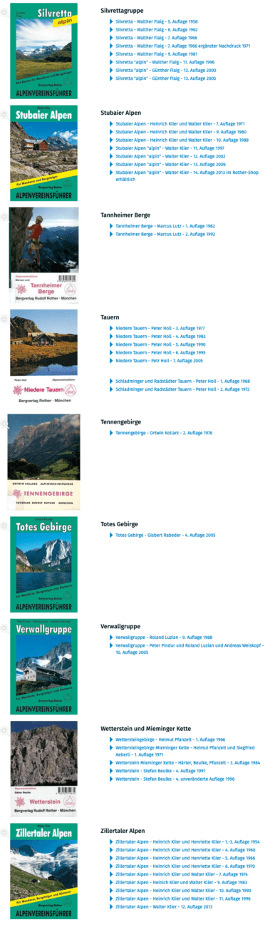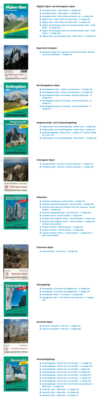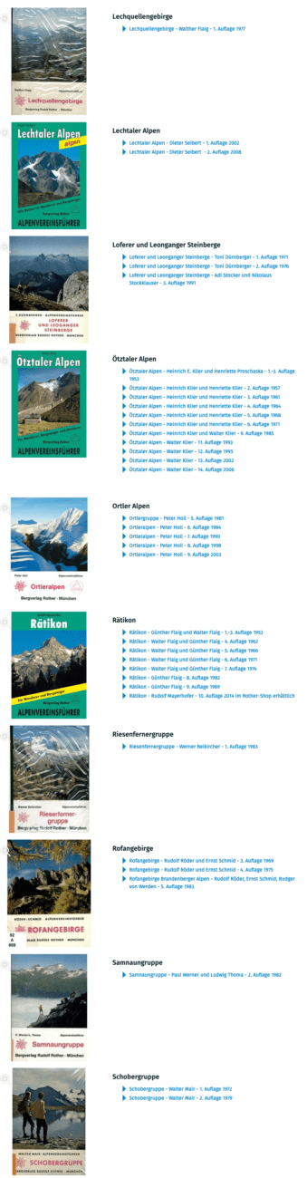 «Es gibt kein umfassenderes Nachschlagewerk über die Ostalpen, als die im Bergverlag Rother erschienenen Alpenvereinsführer. Hier lassen sich alle für Bergsteiger relevanten Informationen finden: über Täler, Gipfel und Hütten, Wege und Kletterrouten, Flora, Fauna und Geologie – und über die Erschliessungsgeschichte!»