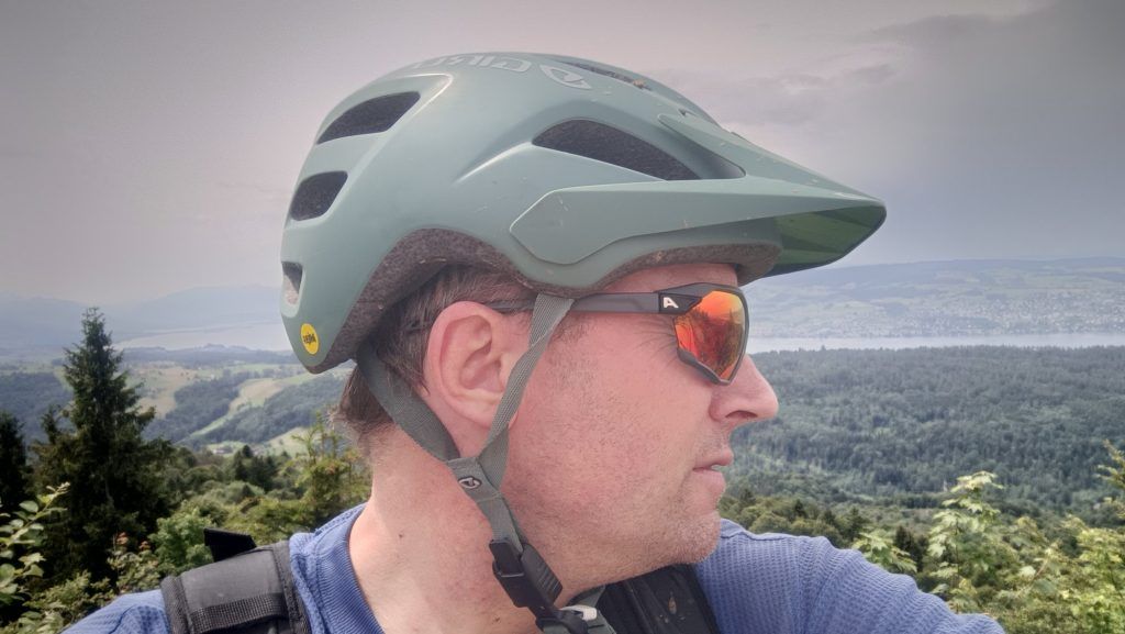 Das Sichtfeld ist dank der nach hinten gezogenen Gläser gut. Im Vergleich zu den heute im Bikebereich verbreiteten Panoramabrillen mit durchgehendem Glas kann die Alpina Twist Six QV konstruktionsbedingt nicht ganz mithalten. Dafür wirkt sie mit zwei Gläsern im Gesicht weniger massig und der Vollrahmen ist kleiner. Was man bevorzugt, ist Geschmackssache.