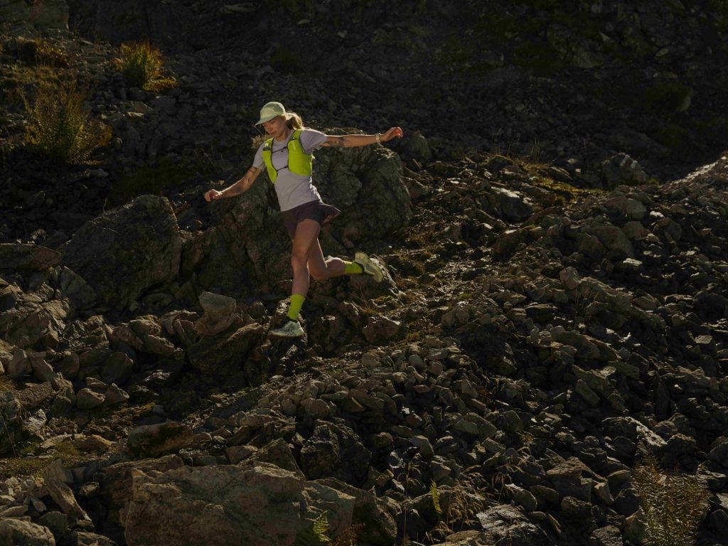 Der Schuh setzt weiterhin auf Vibram Megagrip mit LITEBASE für Langlebigkeit und starken Grip bei minimalem Gewicht. Ein neues Profil mit unterschiedlich hohen Stollen (4,5 mm und 3,5 mm) lässt Schlamm effizienter abfallen, reduziert Gewicht und hält die Traktion auf nassen wie trockenen Oberflächen. Die überarbeitete Aussensohle gibt Läuferinnen und Läufern Sicherheit auf losem und technischem Untergrund, damit sie auch im technischen Berggelände Tempo machen können.