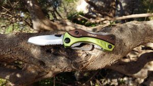 Das Gerber Crucial Multi-Tool ist eine gelungene Kombination aus Multitool und vollwertigem Einhandmesser! Neben der kräftigen Zange mit V-Cut-Drahtschneider bietet das Tool vier aussenliegende Werkzeuge wie die arretierbare Messerklinge mit Wellenschliff, einen Flaschenöffner mit integriertem Karabinerhaken sowie einen Längsschlitz- und einen Kreuzschlitz-Schraubendreher. Ein Gürtelclip macht das gut durchdachte Mulitool komplett. Praktisch!