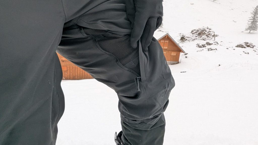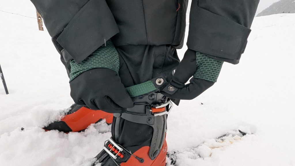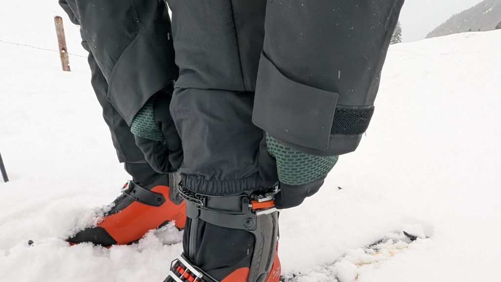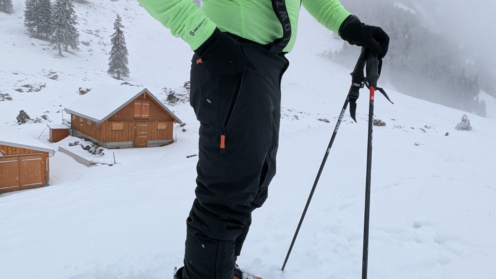 Die Details sind gut durchdacht. Der verstellbare Bund ist mit Fleece gefüttert und sehr bequem. Abnehmbare Hosenträger bieten zusätzliche Flexibilität. Die Taschen sind praktisch angeordnet. Die Reissverschlüsse funktionieren einwandfrei. Der Schneefang hält Schnee zuverlässig draussen – ein grosser Vorteil, besonders im Tiefschnee. Verstärkte Beinabschlüsse sorgen für zusätzliche Langlebigkeit, was sich vor allem bei intensiver Nutzung bemerkbar macht.