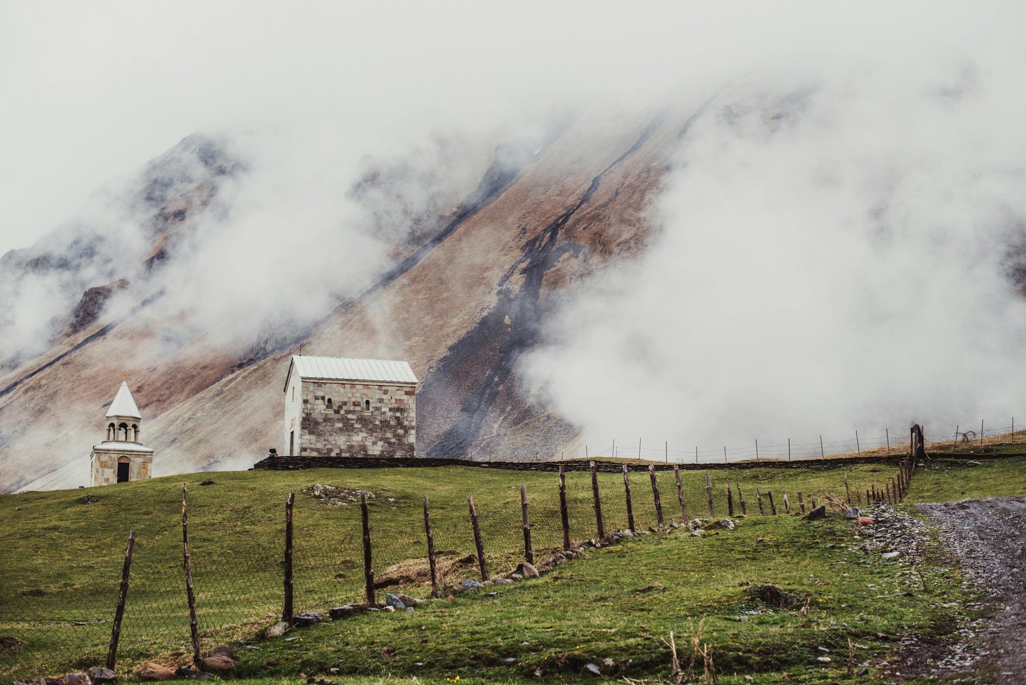 Bild 1/Titelbild: © pexels: Stepantsminda, Georgia, Rustikale Kirche In Nebliger Berglandschaft Mit Zäunen Und Nebel