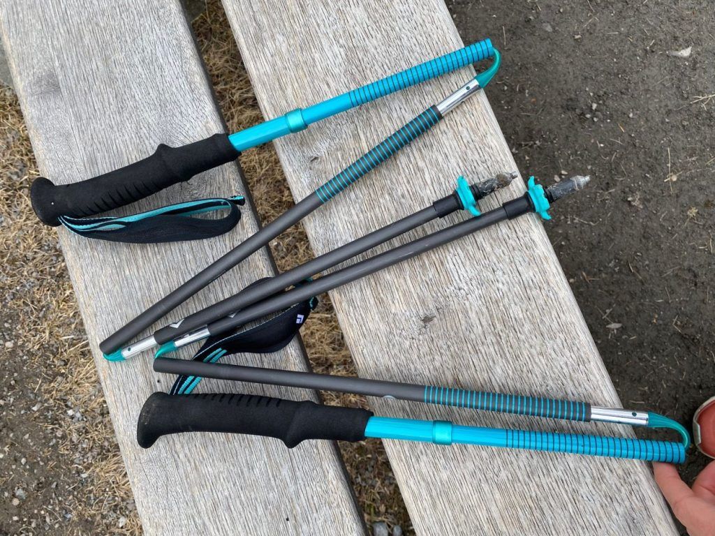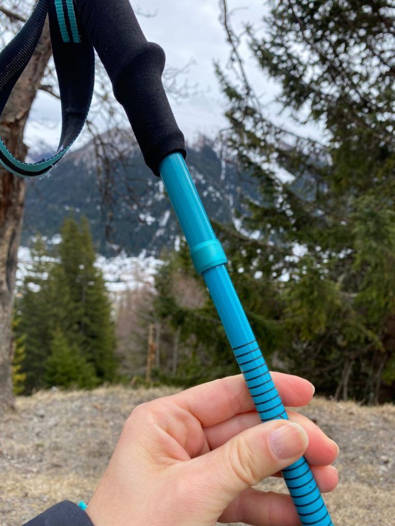 Das Zusammenfalten der Stöcke erfordert anfangs etwas mehr Kraft, und man muss die Spannung manuell wieder einstellen. Das ist anfangs gewöhnungsbedürftig, aber nach ein paar Versuchen findet man den Dreh raus. Auch die Farbe scheint nicht besonders beständig zu sein und nutzt sich mit der Zeit ab. Für Winteraktivitäten könnten sie trotz der optionalen Schneeteller etwas kurz kommen.