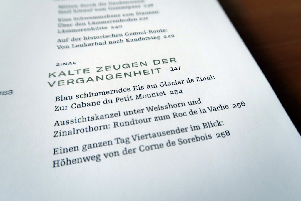 Ein kurzes Durchblättern bekräftigt den ersten Eindruck: In dieses Buch muss man eintauchen und sich Zeit nehmen, um die Texte und Bilder auf sich wirken zu lassen. Unbewusst bleibe ich in Zinal bei den «Kalten Zeugen der Vergangenheit» hängen. Und schon bin ich mittendrin im blau schimmerden Eis des Glacier de Zinal. Als Bergführer kenne ich die Gegend gut und bin schon oft zur Cabane du Mountet aufgestiegen, um am nächsten Tag einen Gipfel in diesem beeindruckenden Bergkessel zu besteigen. Im Winter bin ich auch schon den langen Glacier de Zinal mit den Tourenskis abgefahren. Es ist beeindruckend und traurig zu sehen, wie sich der Gletscher zurückzieht.