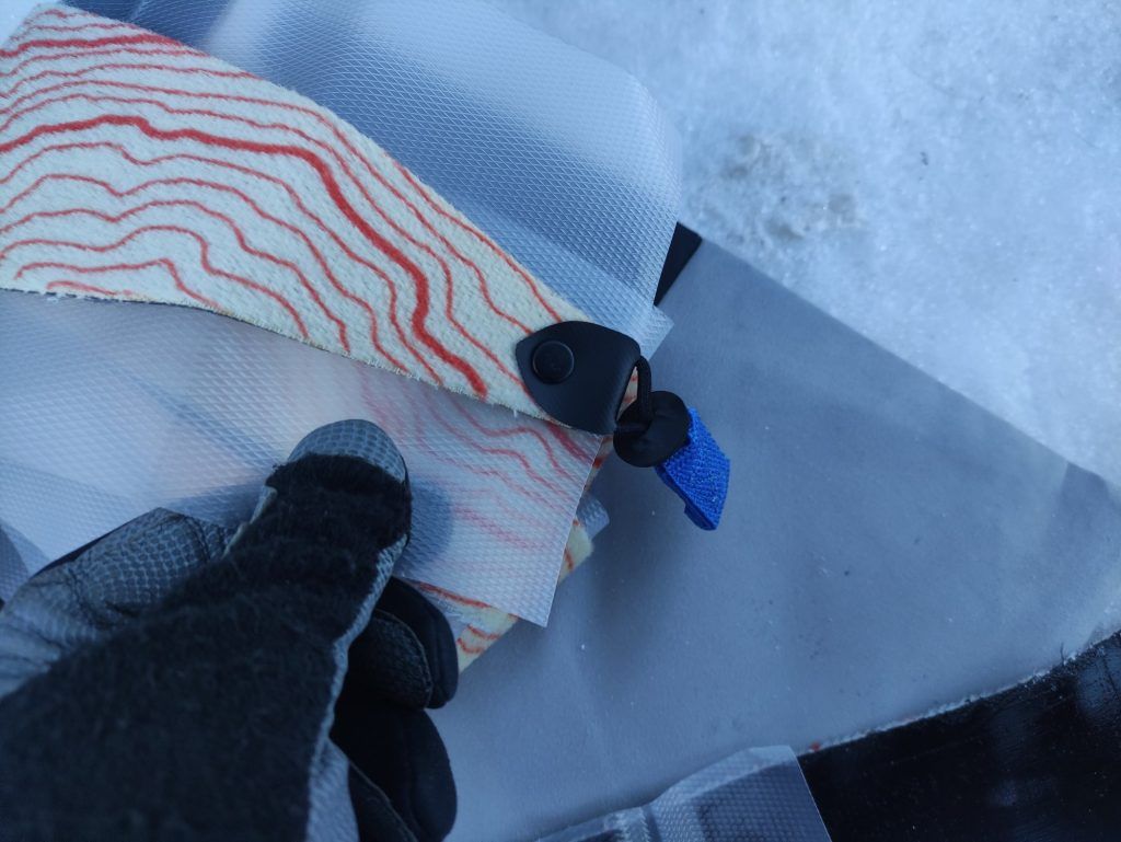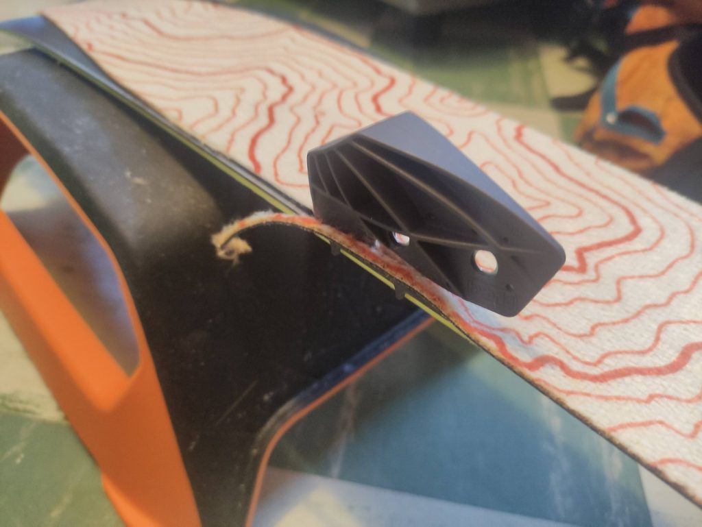 Die Befestigung des Contour Hybrid Speed 105 an den Ski ist sowohl praktisch als auch flexibel. Der Race Tip-Befestigungspunkt ist ultraleicht und bietet eine schnelle Möglichkeit, das Fell zu entfernen, was für schnelle Aufstiege und Abfahrten von grossem Nutzen ist. Das Endhaken-System sorgt dafür, dass das Fell auch bei schwierigen Bedingungen sicher an seinem Platz bleibt. So wird das Handling des Fells zu einer einfachen und effizienten Aufgabe. Ich nutzte das Fell nur mit dem Race Tip und es hielt immer zuverlässig. Einziger Negativpunkt ist, dass das Gummiband beim Race Tip nach gut 3 Monaten gerissen ist, was sich jedoch einfach ersetzen lässt.