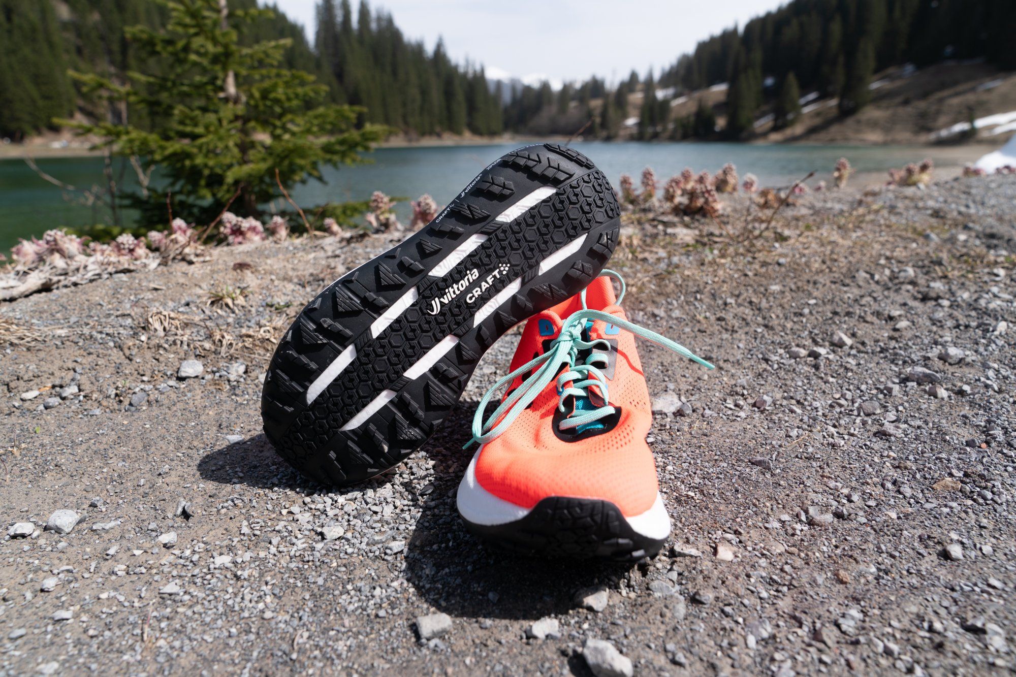 Dank der rutschfesten Sohle bietet der CRAFT Xplor Hybrid hervorragenden Grip auf Asphalt, Schotter und leichten Trails. Die grosse Fussabdruckfläche der Sohle verleiht Stabilität auf ebenem Untergrund, erschwert jedoch das präzise Platzieren des Fusses auf technischen Trails. Die hochgezogene Sohlenform sorgt für ein angenehmes Abrollverhalten. Ich musste darauf achten, meine Fusstechnik beizubehalten, um in anderen Schuhen nicht mit den Füssen auf den Asphalt zu „klatschen“.