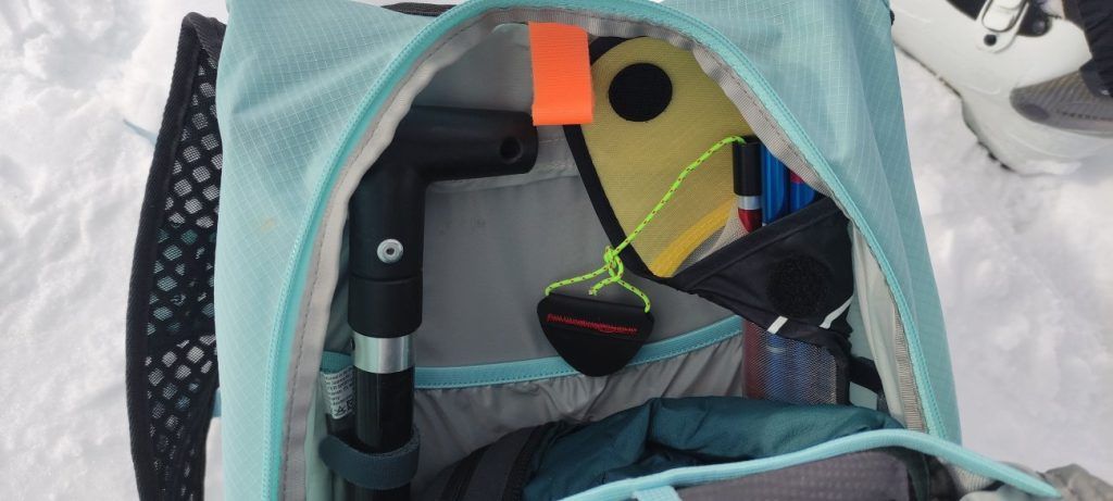 Der Deuter Updays 20 verfügt über ein spezielles Sicherheitsfach für Schaufel und Sonde. Der Pickel lässt sich einfach befestigen, und es gibt eine Vorrichtung für die Trinkblase. Die Schulterträger und Hüftflossen sind gut belüftet. Der Rucksack ist sehr leicht und ideal für schnelle Touren. Er bietet Platz für alles nötige Material und trägt sich angenehm.