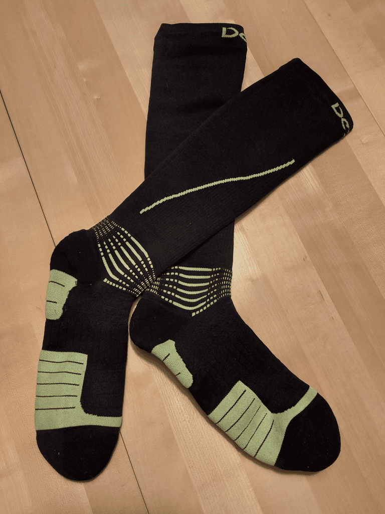 Die Dexshell Compression Socks sind im Vergleich zu anderen Kompressionssocken relativ dick und schwer. Das macht sie besonders robust, aber weniger kompakt im Packmass. Wer auf leichtes Gepäck setzt, muss hier also Abstriche machen. Das höhere Gewicht ist aber für die Schutzfunktion der Socken notwendig, daher sehe ich dies als Kompromiss an.