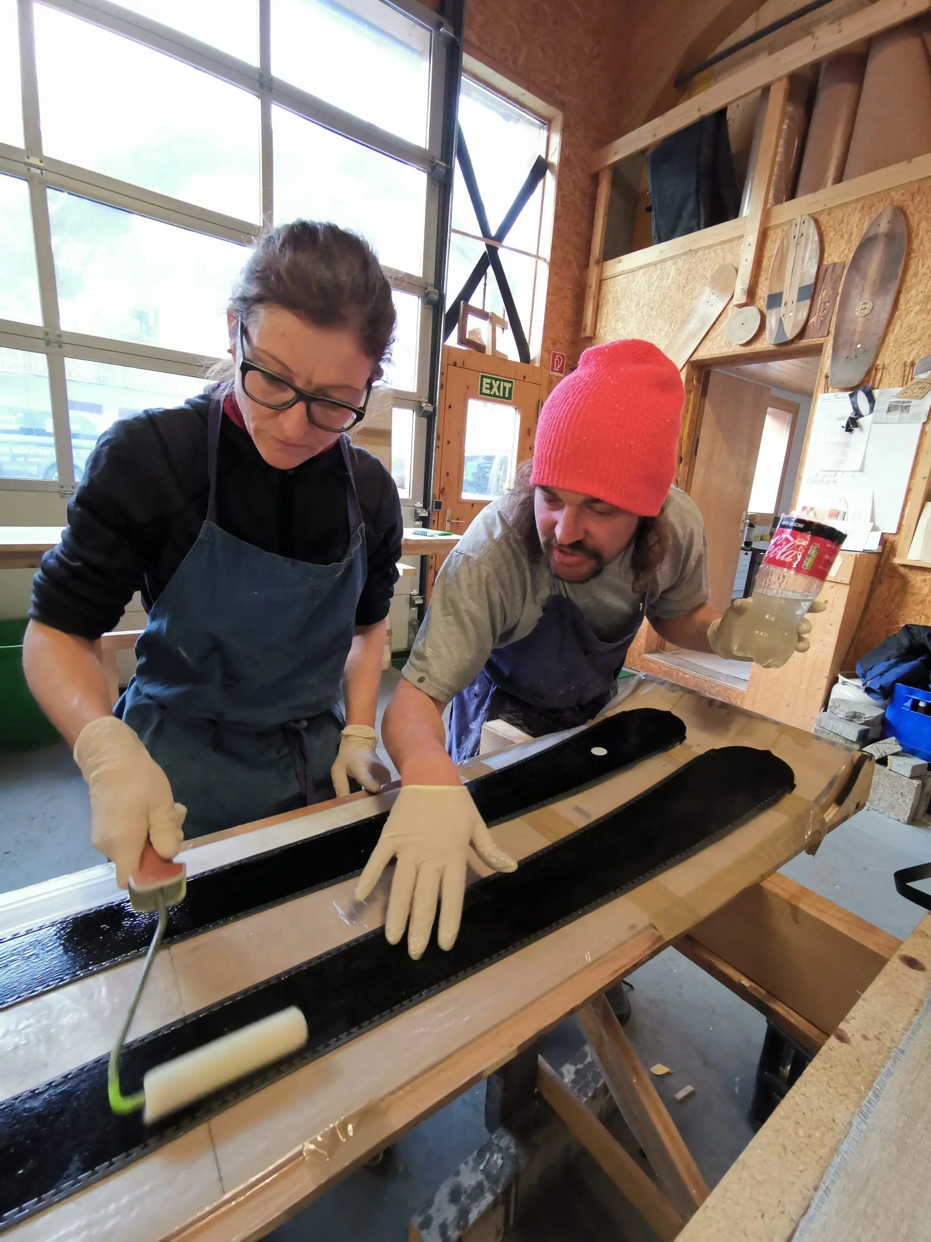 Egal ob für den Schnee, den Asphalt oder das Wasser, Hauptsache es gleitet oder rollt und ist selbst gemacht. Man glaubt es nicht, aber beide haben schon länger selber Ski, Surfboards oder Skateboards hergestellt. Das im gleichen Ort und wussten nichts voneinander. Zum Glück haben Andere dafür gesorgt, dass sie zueinander gefunden haben und die wunderbare Firma ENLAIN gründen konnten. Jetzt haben andere Berglöwen und Berggeissen (auch Seewlöwen und Seepferdchen) die Möglichkeit unter der fachmännischen Hilfe des ENLAIN-Teams den Traum vom eigenen Brett/ eigenen Brettern am Ski- und Snowboard-Baukurs zu verwirklichen.