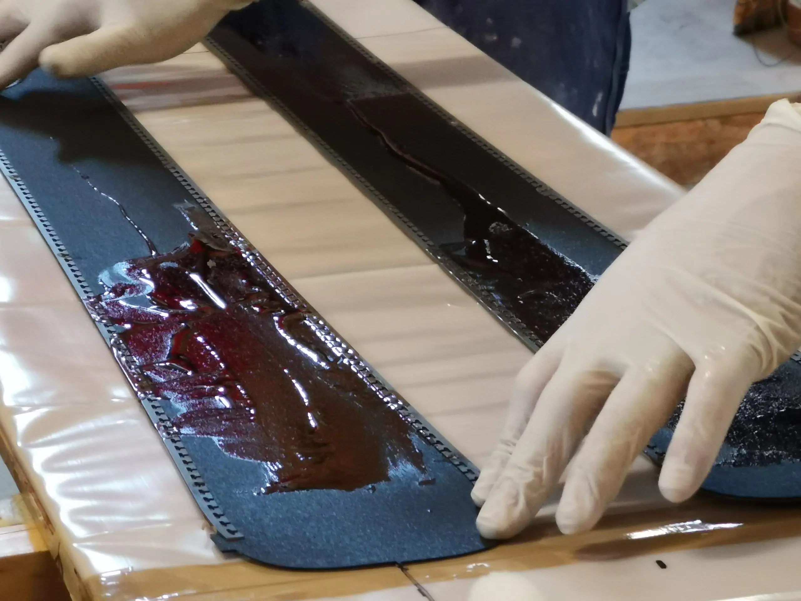 An einem wunderbar sonnigen Wochenende im Februar sind ich und 5 andere BergliebhaberInnen in der Werkstatt in Laax eingetrudelt. Nach einer kurzen aber ausreichenden Einführung wurden die zuvor ausgewählten Ski- und Snowboardbeläge an die Teilnehmer ausgehändigt. Ein kurzer Blick auf das schwarze Belags-Dings lies meinen Optimismus kurz schwanken und ich stellte mir die Frage, wie daraus ‚bitteschön‘ mein Wunschski Arielentstehen soll?