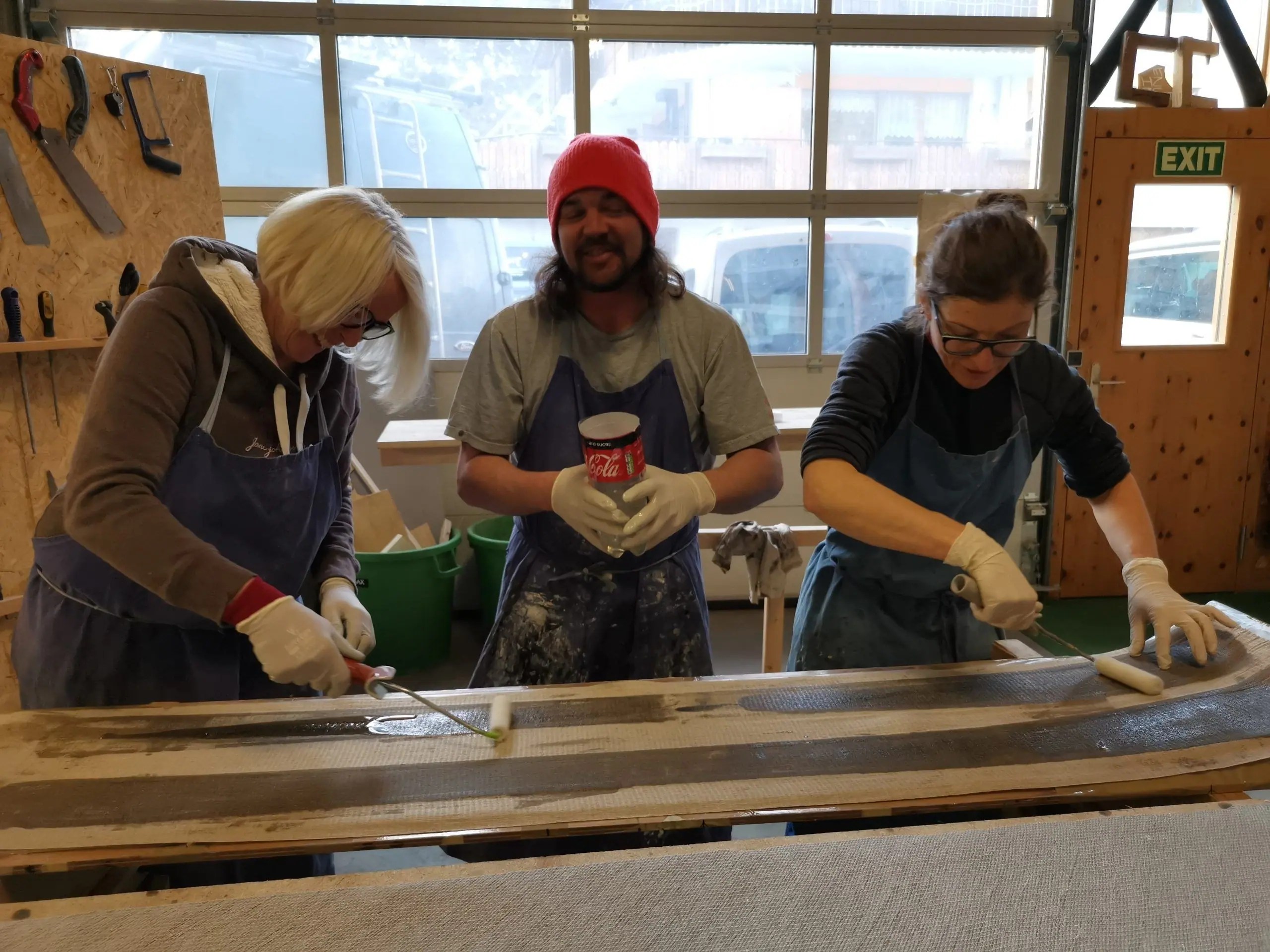 Strahlende Gesichter, glückliches Lachen und entspanntes Plappern erfüllen die Ski- und Snowboardbaukurs-Werkstatt . Berglöwen und -Geissen konnten etwas Wunderbares mit ihren eigenen Händen erschaffen, dies hätten wird jedoch ohne Hilfe von Pirmin, Ben und Urs nicht hingekriegt. Wir wären schon beim Anleimen der Kanten an den Belag gescheitert. Trotzdem, wir sind unendlich Stolz auf unser Endprodukt! Es fehlt nur noch das Montieren der Bindung und den Skiservice durch den Fachmann!