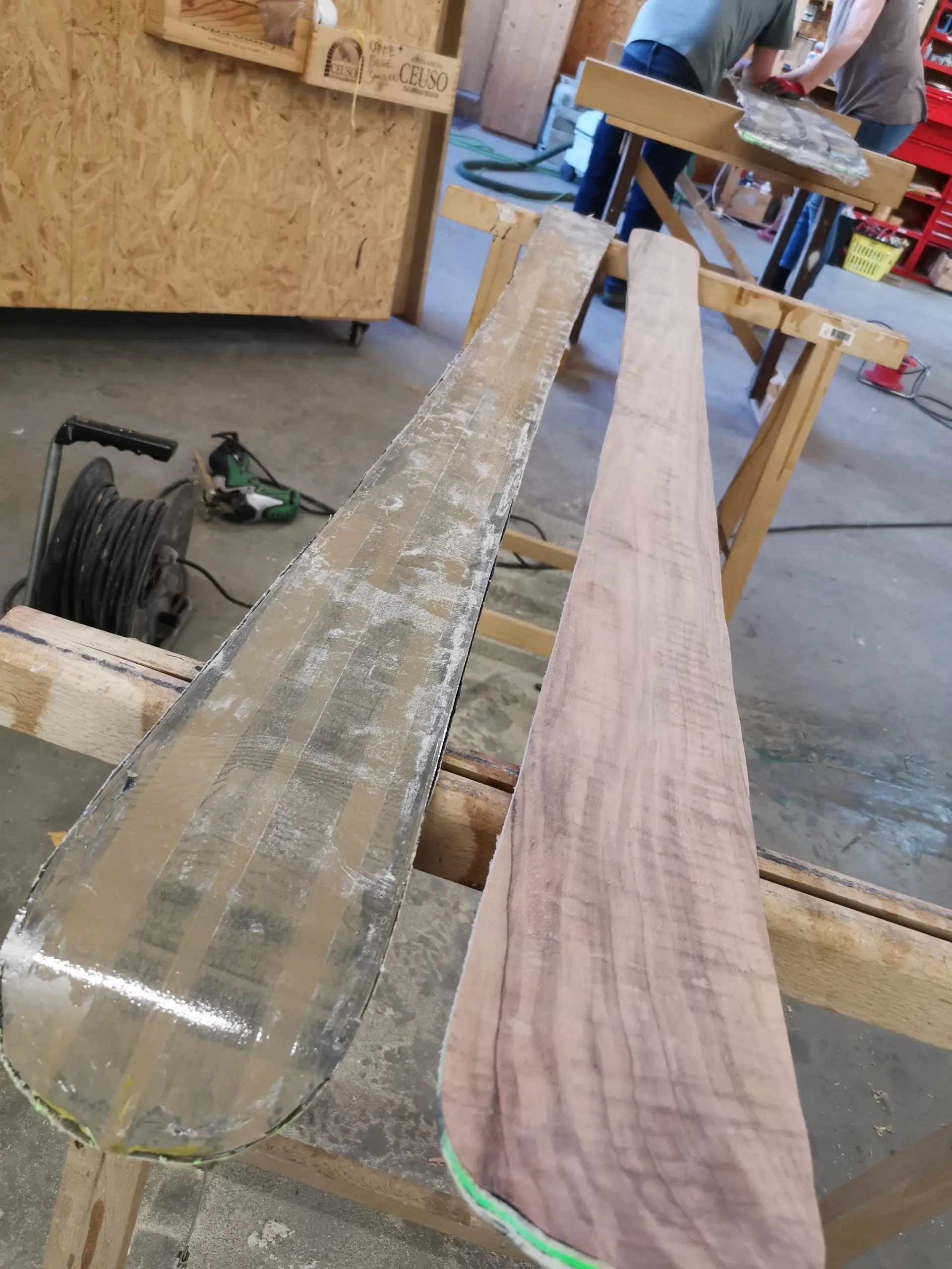 - Furnier: die Sorten kommen hauptsächlich aus Europa. Ausser einem Stapel von Akazienholz, welches Urs in einer aufzulösenden Schreinerei gefunden hat (warum verbrennen, wenn das Schlechte schon geschehen ist? Dann doch lieber noch etwas Schönes wie ein Ski oder Snowboard daraus machen).