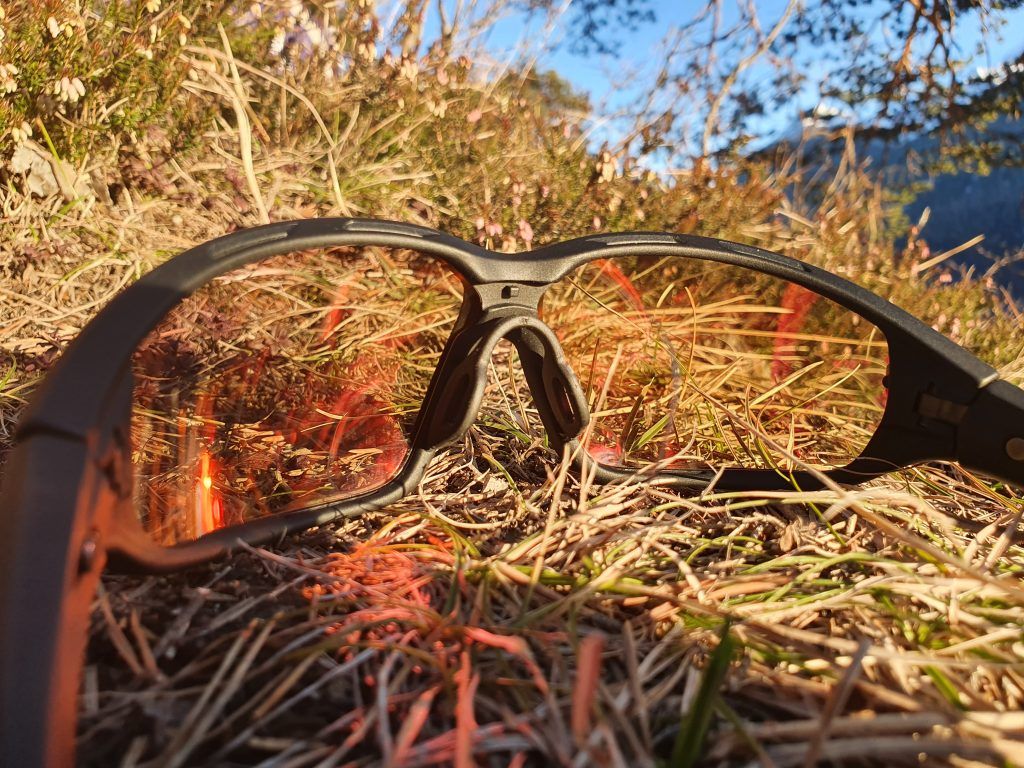 Wie bereits erwähnt, testete ich die Brille mit zwei verschiedenen Gläsern: Einmal Grey+, welche dunkel getönt sind und sich für viel Sonnenschein eignen (Licht-Transmission 13 %). Dazu mit violett-verspiegelten Gläsern (LST™ bright VARiO purple mirror), welche nur leicht getönt sind, sich aber dem Licht anpassen (polarisierend) und besonders kontrastreich sind (dafür sorgt das LST™). Das Glas passt sich so den wechselnden Licht-Verhältnissen an mit einer Licht-Transmission von 13 bis 62 %.