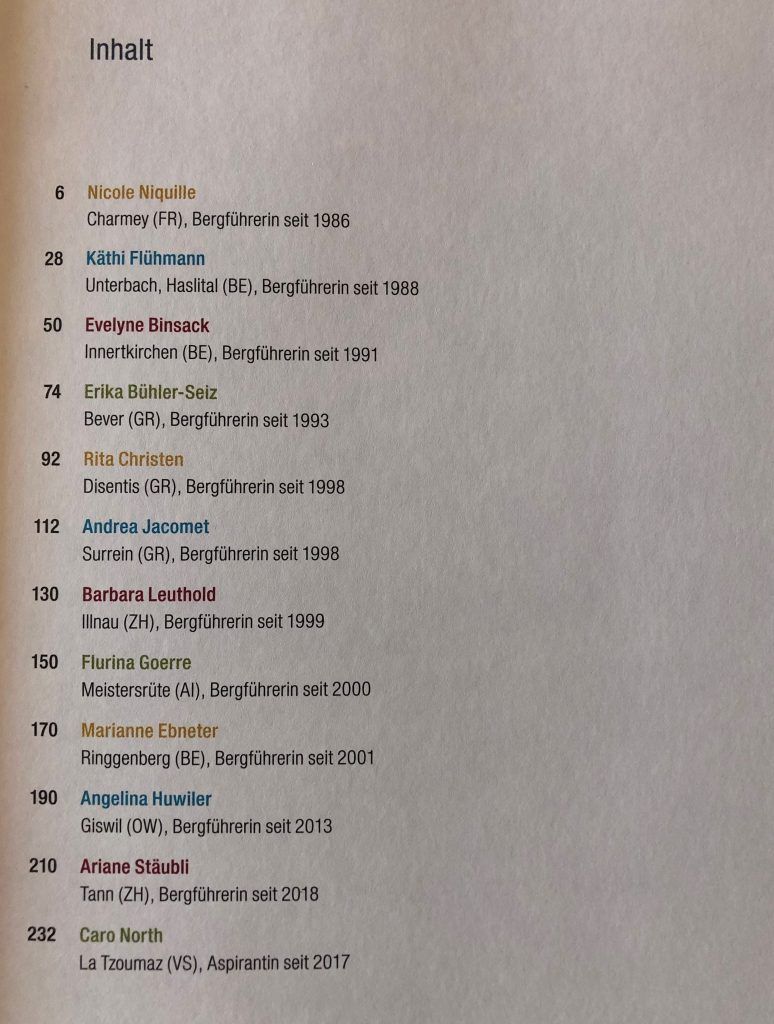 Ergänzt werden die Porträts durch stimmungsvolle Bilder von Christian Jaeggi, Ephraim Bieri und Riccardo Götz, welche die Bergführerinnen unterwegs zeigen, mit und ohne Gäste, im Steilfels führend, im Pulverschnee kurvend und zwischendurch auch mal im blumigen Gras liegend.
