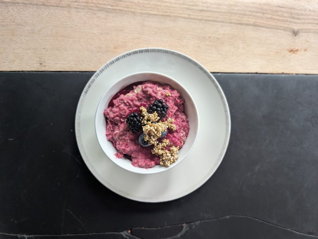 Mein absolutes Lieblingsrezept ist das Müsli mit Roter Bete und Himbeeren. Ich habe es vor einer längeren Biketour ausprobiert – und war begeistert: Es hat so gut und lange gesättigt, dass ich unterwegs keine zusätzlichen Snacks benötigt habe. Das passiert selten. Geschmacklich top, energiemässig ideal für sportliche Tage.