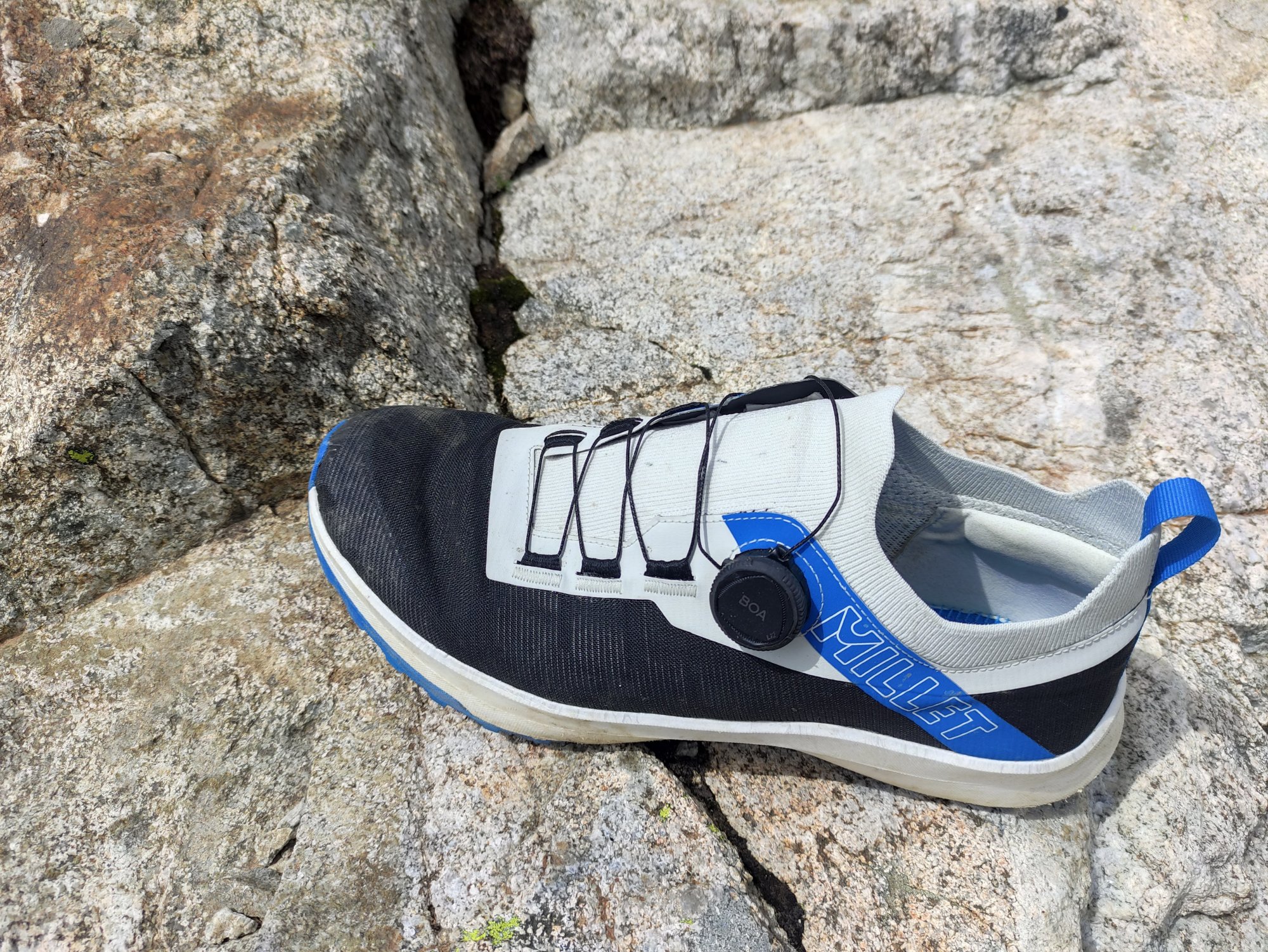 Die ersten Kilometer im INOV8 Roclite G 275 waren fantastisch. Der Schuh hält, was er verspricht: leicht, bequem und mit sensationellem Grip – dazu später mehr. Einzig die Schnürung ist weniger stabil; ich wünschte mir mehr Unterstützung. Die filigranen Schnürsenkel bieten selbst festgezogen keinen optimalen Halt. Beim Wandern fällt das nicht auf, aber bei Downhills im Trailrunning schon. Dort wirkt es negativ.