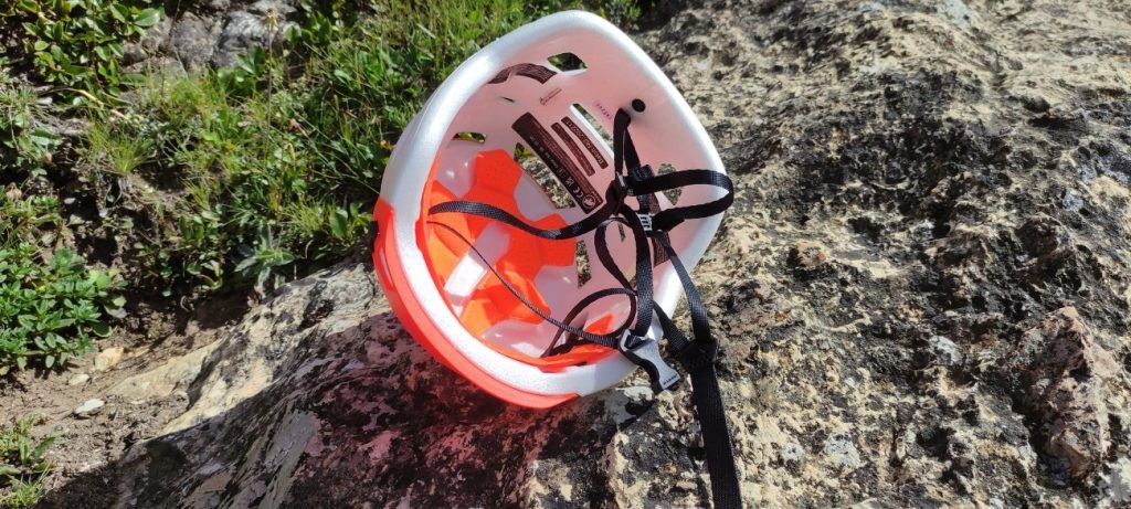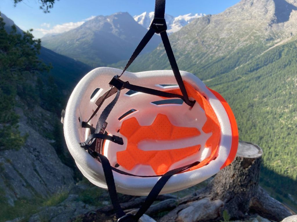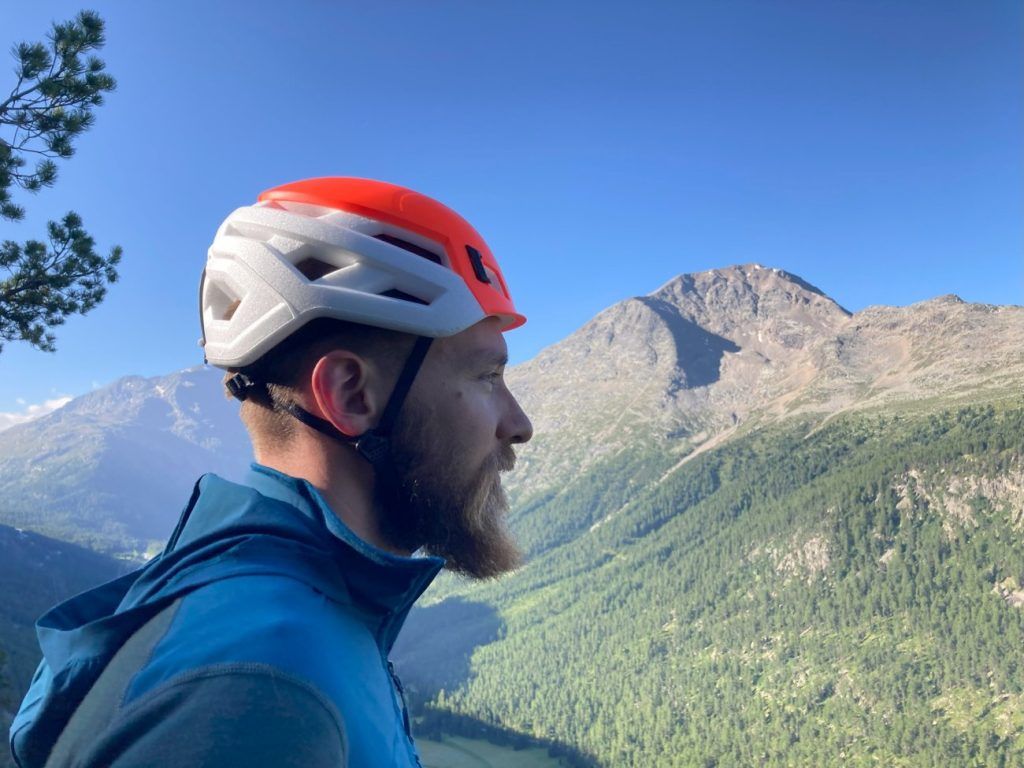 Ich habe auch die Stirnlampenhalterung getestet, die sich als nützlich erwiesen hat, besonders beim alpinen Klettern in den frühen Morgenstunden oder bei Einbruch der Dunkelheit. Das ist definitiv ein Go-to-Helm für alle meine Kletterausflüge.