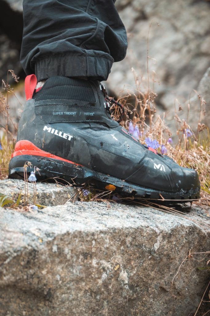 Da ich bisher mit verschiedenen Millet-Produkten sehr zufrieden war, habe ich im Internet recherchiert, welcher Schuh meinen Kriterien entspricht: leicht, wasserfest, stabile Sohle, geeignet für leichte Kletterpassagen, halbhoch und langlebig. So bin ich auf den Millet Super Trident Matryx GTX gestossen.