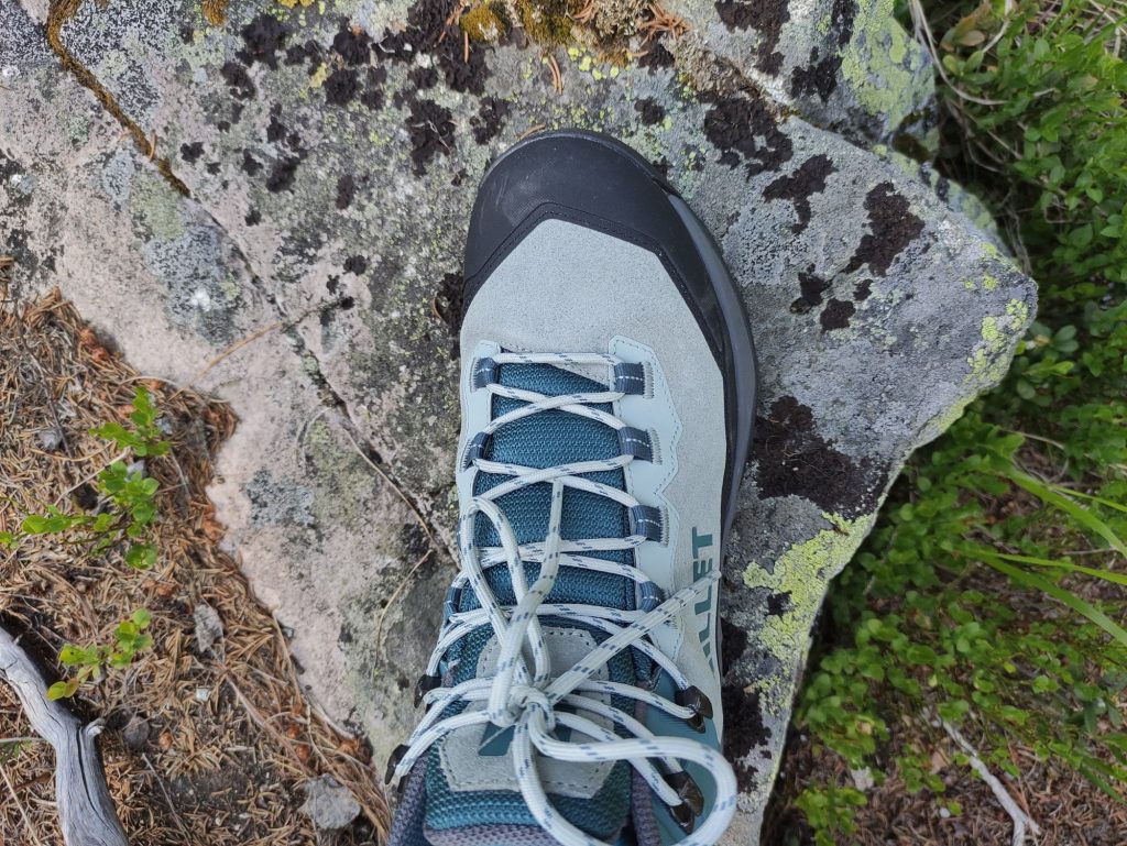 Ich war gespannt auf den Test des Millet UBIC Mid GORE-TEX Damen in der Farbe Seaweed. Die Optik gefiel mir auf Anhieb – sportlich, aber dezent. Auch das Gewicht überzeugte sofort. Beim ersten Anprobieren spürte ich: Der Schuh sitzt perfekt. Ich trage normalerweise EU 40 und die Grösse passte genau.