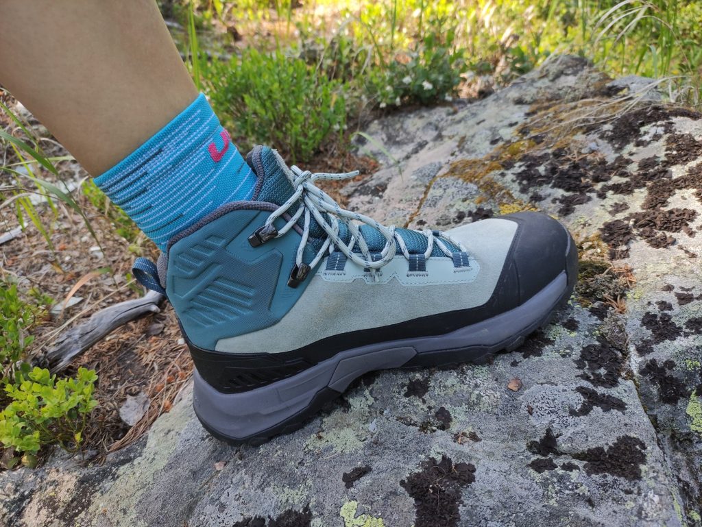 Ein grosser Vorteil ist das geringe Gewicht – mit knapp 500 Gramm pro Schuh ist der Millet UBIC Mid GORE-TEX Damen wirklich leicht. Das macht sich auf langen Touren bemerkbar. Man ermüdet langsamer und bewegt sich einfach angenehmer. Das Design gefällt mir auch sehr gut – sportlich, modern, aber nicht zu auffällig.