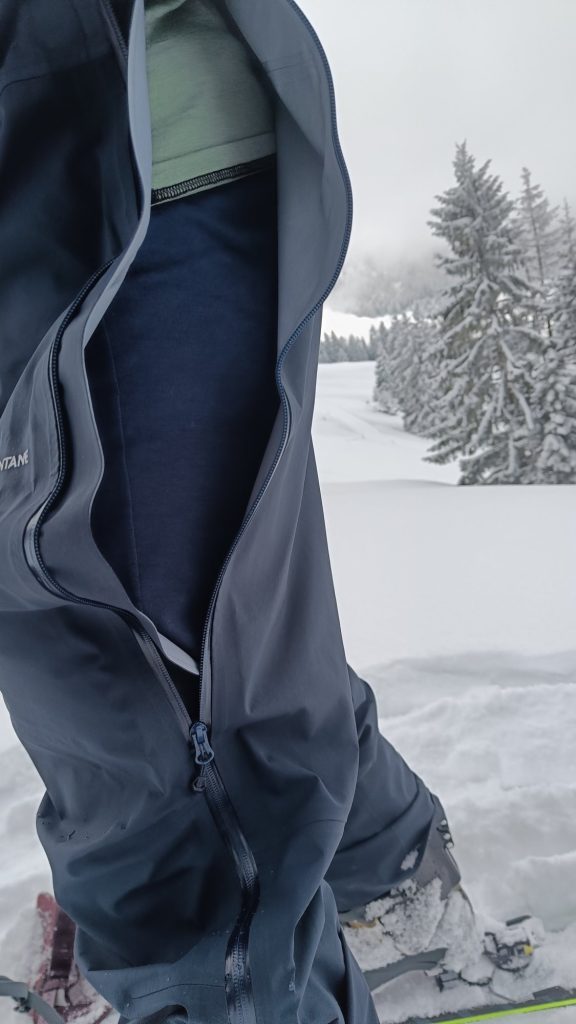 Die Hose hat eine bequeme Passform – dies ist gerade für eine Hardshell wichtig. Der obere Bereich vor dem Bauch ist aus einem elastischen Material gefertigt, was die Hose noch bequemer macht. Als hochgezogene Latzhose schützt sie hervorragend die Taille und Nierengegend – sie ist somit insbesondere bei garstigen Wetterverhältnissen eine tolle Wahl. Dank den durchgehenden Zweiwegreisverschlüssen lassen sie sich bei Bedarf auch einfach an- oder abziehen, ohne dass Schuhe, Skis oder Schneeschuhe entfernt werden müssen. Dies ist z.B. bei frühlingshaften Bedingungen ideal. Dank den Reissverschlüssen lässt sich die Montane Alta Waterproof Pants sehr gut öffnen und belüften. Damit wird verhindert, dass man trotz Gore Tex Membran zu fest schwitzt.