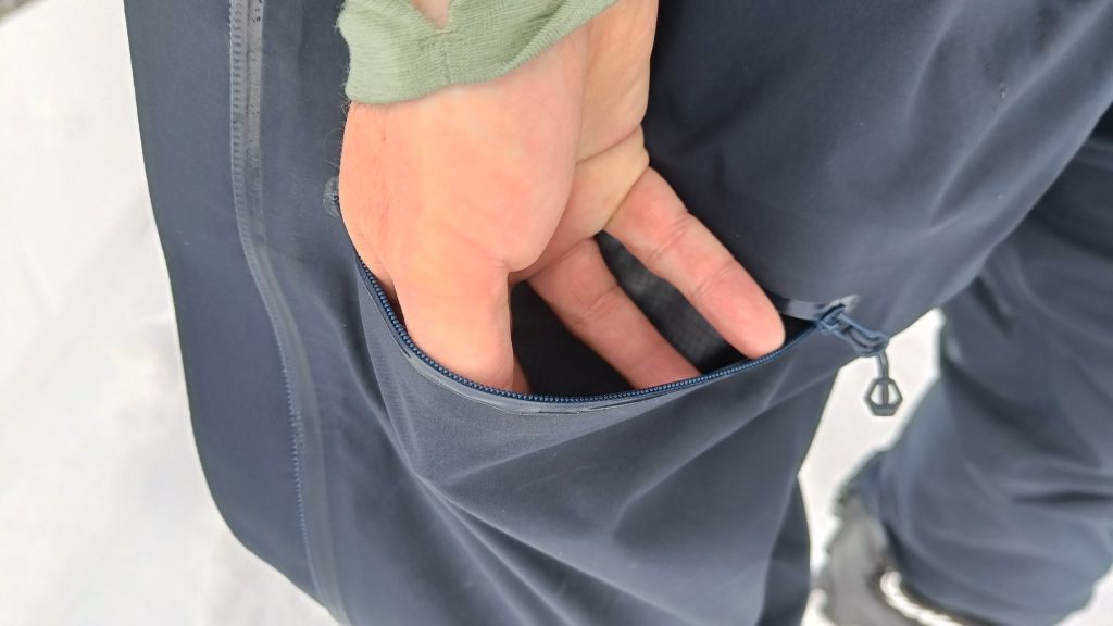 Wichtig für den Praxiseinsatz sind auch die Features. Die Montane Alta Waterproof Pants verfügt über die essentiellen Funktionen, wobei Auswahl und Details durchdacht sind: Eine gute Gamasche damit bei tiefem Schnee nichts in die Schuhe dringt und eine grosse Tasche mit wasserfestem Reissverschluss am Oberschenkel. Ich persönlich hätte da gerne noch eine zweite solche Tasche für mehr Material gehabt (weil ich eine Tasche für mein Lawinenverschüttetensuchgerät nutze), dies kommt aber auf die Bedürfnisse drauf an – hier haben sich die Entwickler von Montane wohl gesagt: «Weniger ist mehr».