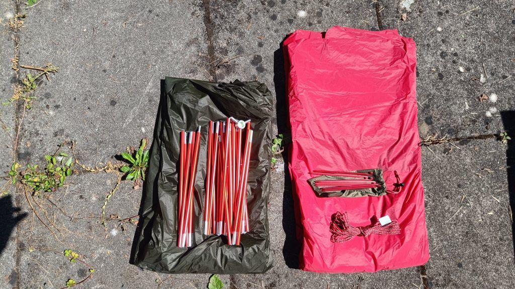 - Enthält: Zelt, Überzelt, Zeltstangen, Zeltheringe, Abspannleinen, Packsack, Wäscheleinen und Aufbauanleitung.
