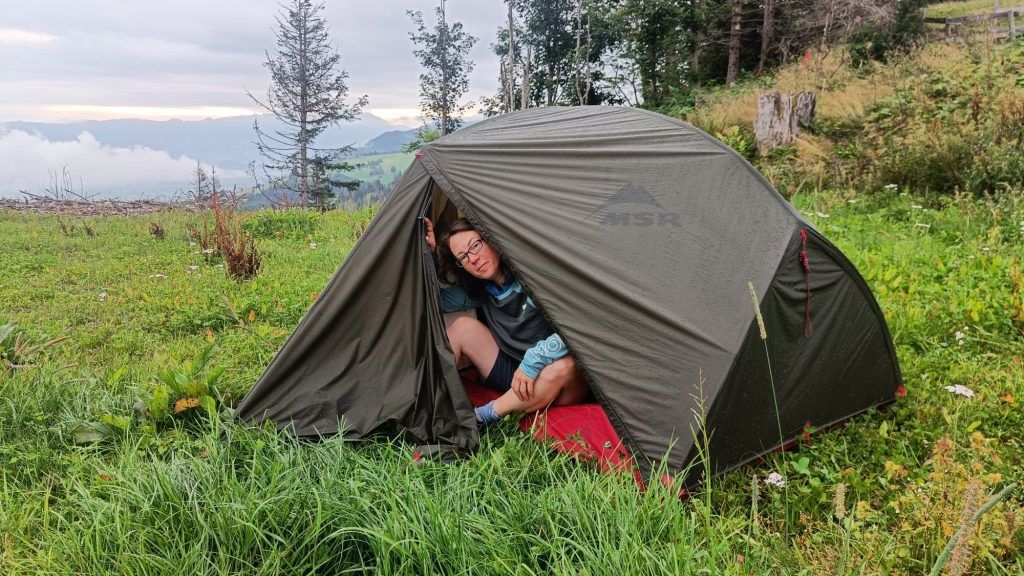 Das MSR Hubba Hubba Bikepack 2 ist ein 3-Jahreszeiten-Zelt. Bei kühleren Temperaturen und Wind schützt das windabweisende Innenzelt vor Durchzug. Ich habe es auch im Winter genutzt, solange keine grossen Neuschneemengen fallen. Bei starkem Sturm stösst es jedoch an seine Grenzen – es ist kein Expeditionszelt.