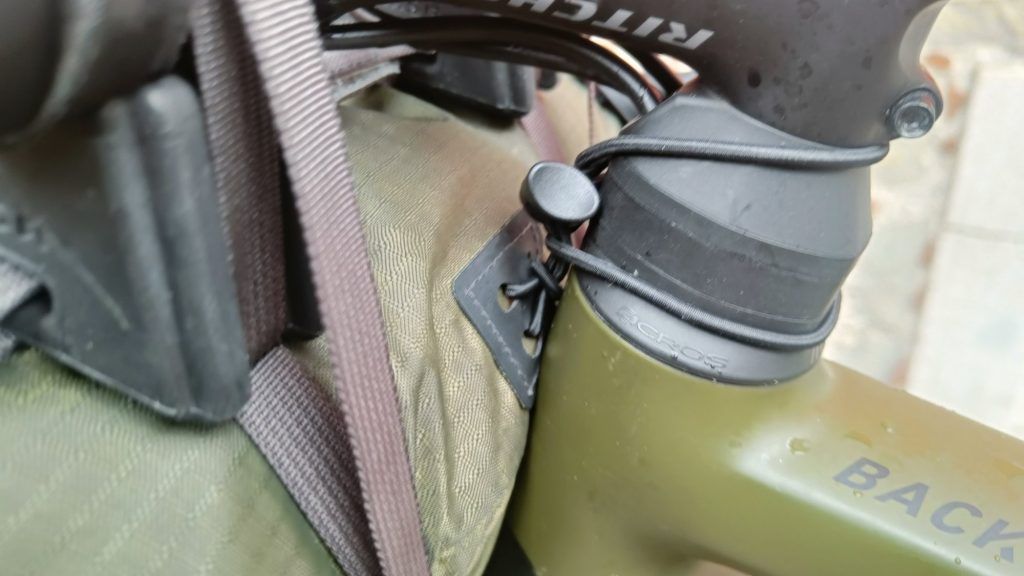- Abstandshalter für Fahrradlenker: Abnehmbare Abstandshalter sorgen dafür, dass die Tasche nicht am Lenker scheuert. Zudem wird so mehr Platz für Hände oder Zubehör geschaffen. Ein Lenkkopf-Spannseil sorgt für zusätzliche Stabilität im Gelände.