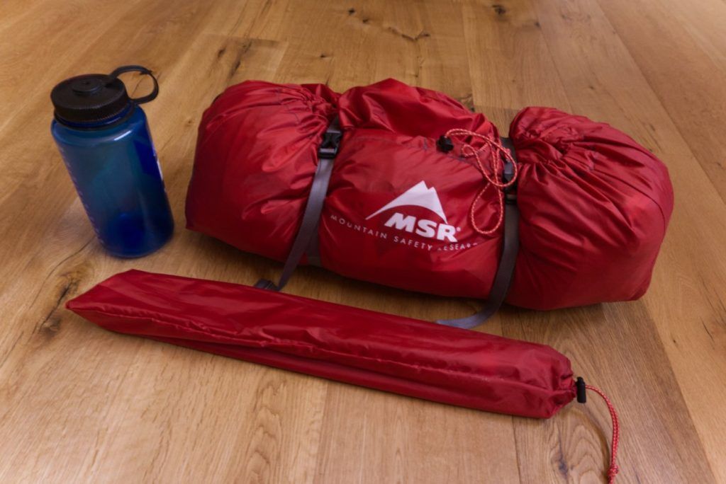 Das MSR Tindheim 2 lässt sich leicht packen. Der beiliegende Packsack funktioniert wie ein Seilsack: Das Zelt wird zusammengepackt, in den Sack gesteckt, die Kordel zugezogen und mit den Kompressionsriemen komprimiert. Wenn die Zeltstangen separat verstaut werden, kann das Zelt auf eine akzeptable Grösse komprimiert werden, sodass es problemlos quer in den Trekkingrucksack passt. Das Packmass des Tindheim 2 entspricht etwa anderen Zelten dieser Kategorie und ist nicht besonders klein. Angesichts der Robustheit und des komfortablen Platzangebots finde ich das Packmass völlig in Ordnung.