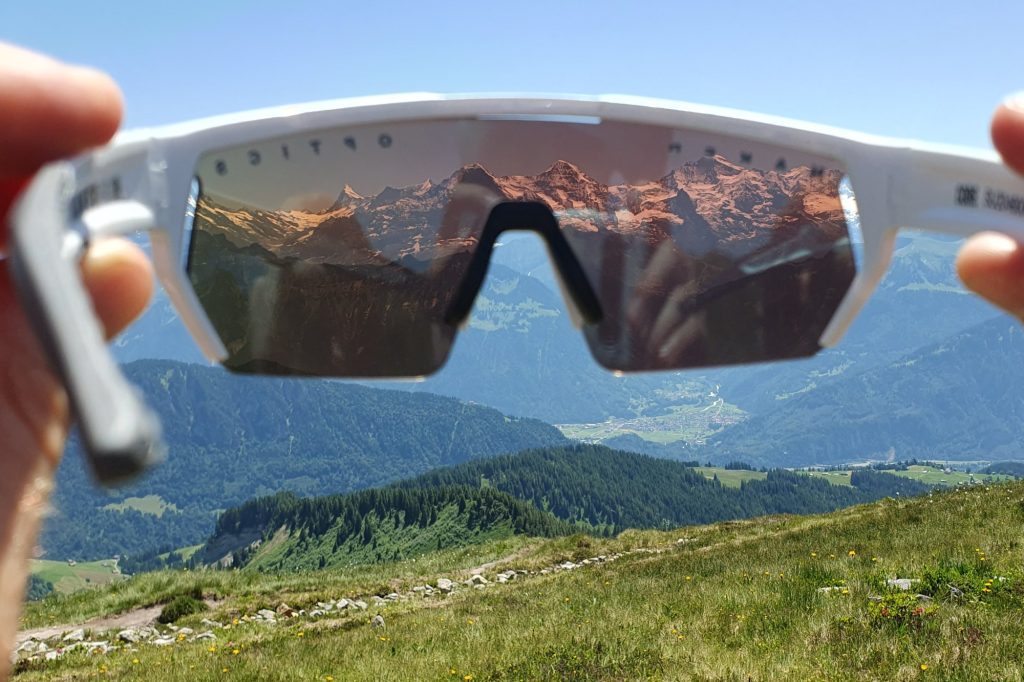 Allerdings muss ich im direkten Vergleich zu meiner bisherigen Sportbrille eine Einschränkung beim Blickfeld feststellen. Während die bisherige ein deutlich breiteres Sichtfeld bietet – was besonders auf dem Rad von Vorteil ist – wirkt das Sichtfeld bei der NAKED Optics The BLADE etwas enger. Beim Schulterblick oder schnellen Richtungswechseln fällt das besonders auf. Beim Wandern ist dieser Aspekt weniger störend, doch auf dem Velo vermisse ich die Weite des Sichtbereichs spürbar.