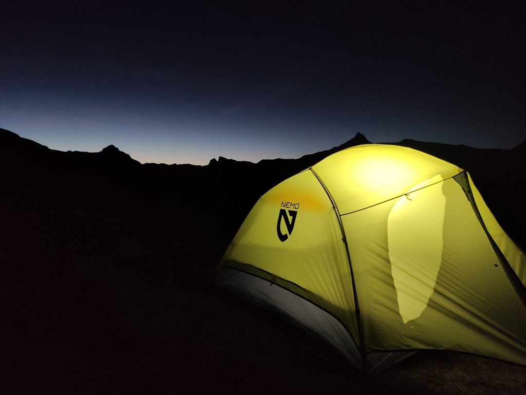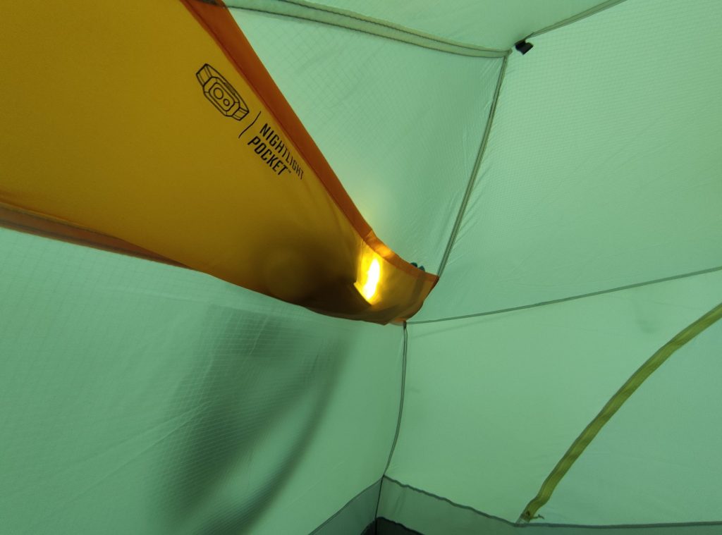 Viele kleine Features machen den Alltag im Zelt angenehmer. Im Nemo Dagger OSMO Ridge gibt es mehrere Taschen. Besonders gut gefallen mir die Nightlight Pockets. Dort kann man eine Stirnlampe einlegen. Das Licht wird gestreut und das Zelt wird gleichmässig warm beleuchtet.