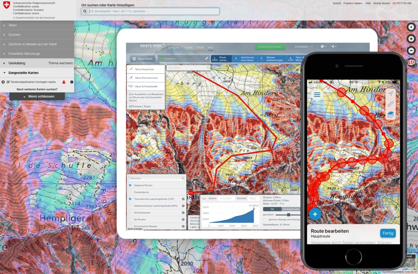- Im Tourenplanungsmodul TOUR von White Risk (whiterisk.ch und App) als Layer integriert mit einer Standard-Lizenz verfügbar.