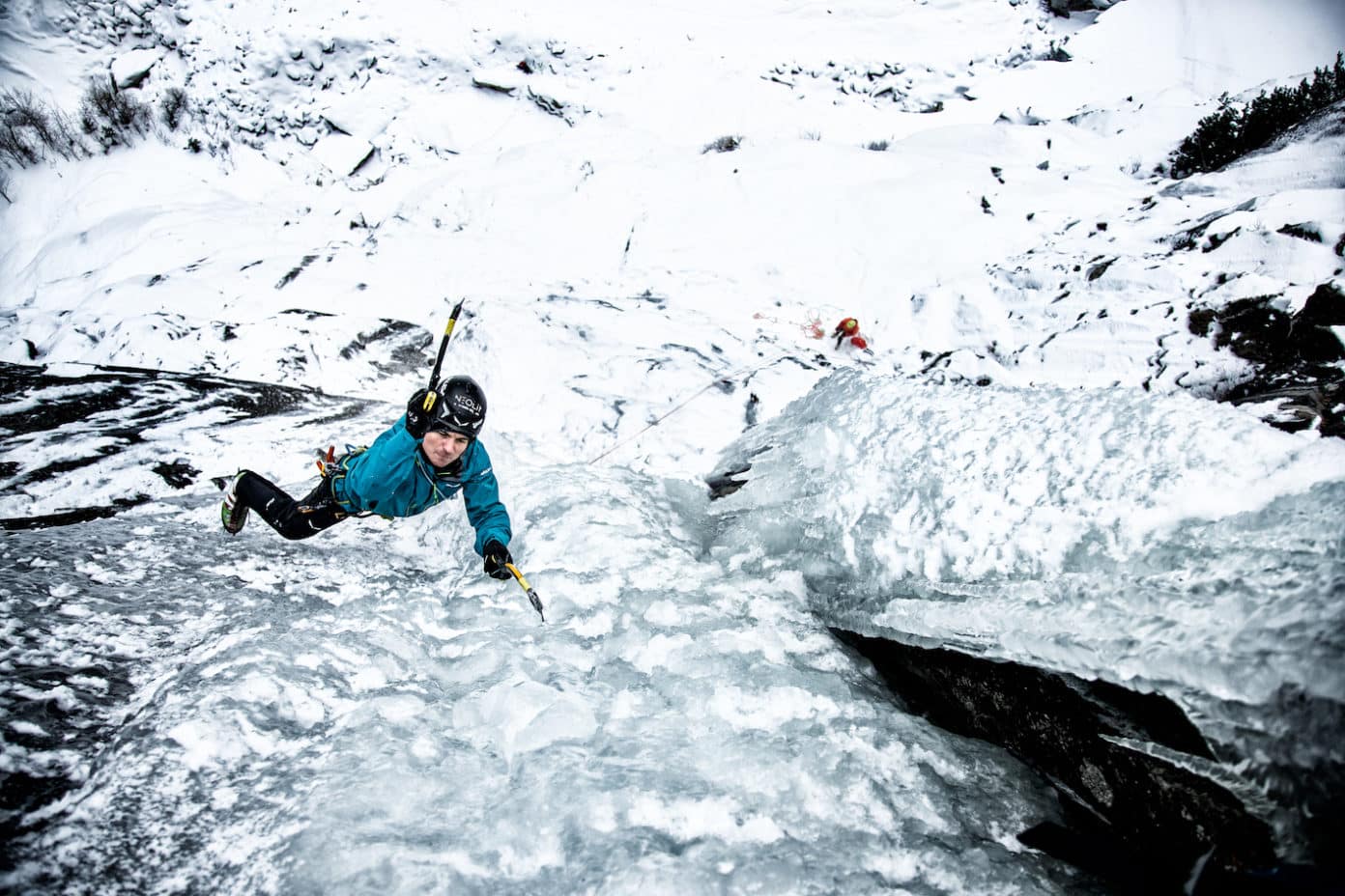 Mit der Absicht die schöne Eis-Fels-Linie in klassischer Absicherung,