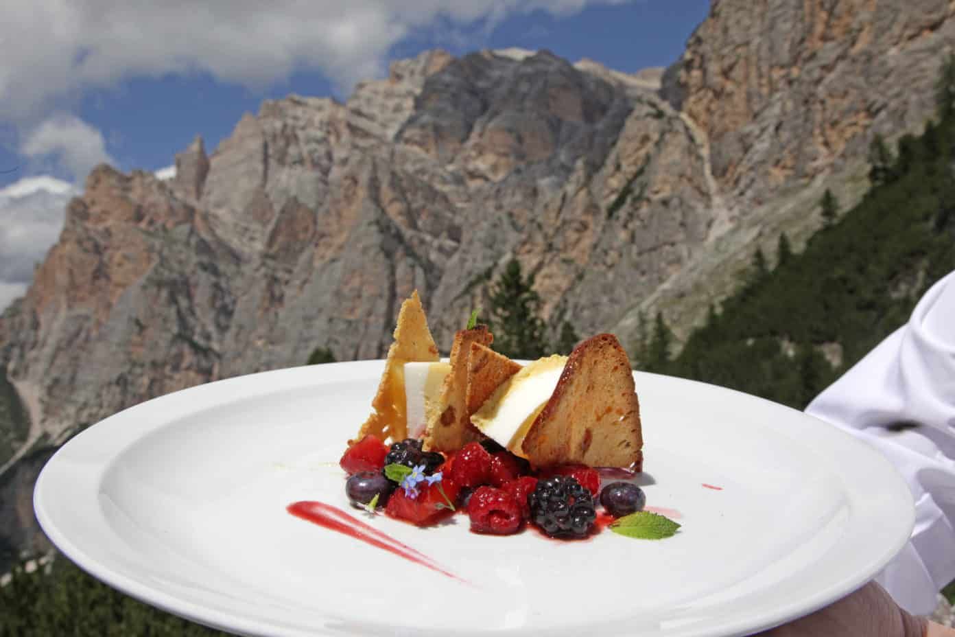 Die Tour GourMete Unesco startet bei der Capanna Alpina in Armentarola direkt zu Füssen des Naturparks Fanes-Sennes-Prags. Zunächst mündet sie in den Wanderweg Nr. 11, der bis zum Col de Locia führt und weiter auf eine grüne Hochebene, wo es dann rechts auf den Weg 20/B und bis zur Forcella dl Lech Scharte auf 2475 m geht. Dann beginnt der Weg bergab bis zum See Lech de Lagació, wo man dann weiter wandert bis zur Scotoni Hütte am Weg Nr. 20. Bei der Scotoni Hütte hat Norbert Niederkofler, Küchenchef des mit zwei Michelinsternen ausgezeichneten Restaurants St. Hubertus des Relais & Chateaux Hotel Rosa Alpina in San Cassiano einiges vorbereitet. Sein Gericht ist eine Komposition aus Ravioli mit flüssigem Ziegenkäse, Brennesseln und Bries. Danach führt ein gut einstündiger Spaziergang entlang der Lagazuoi Skipiste zurück zum Ausgangspunkt dieser Tour.