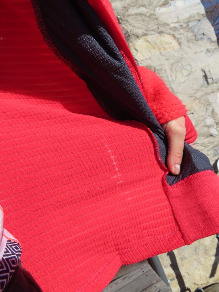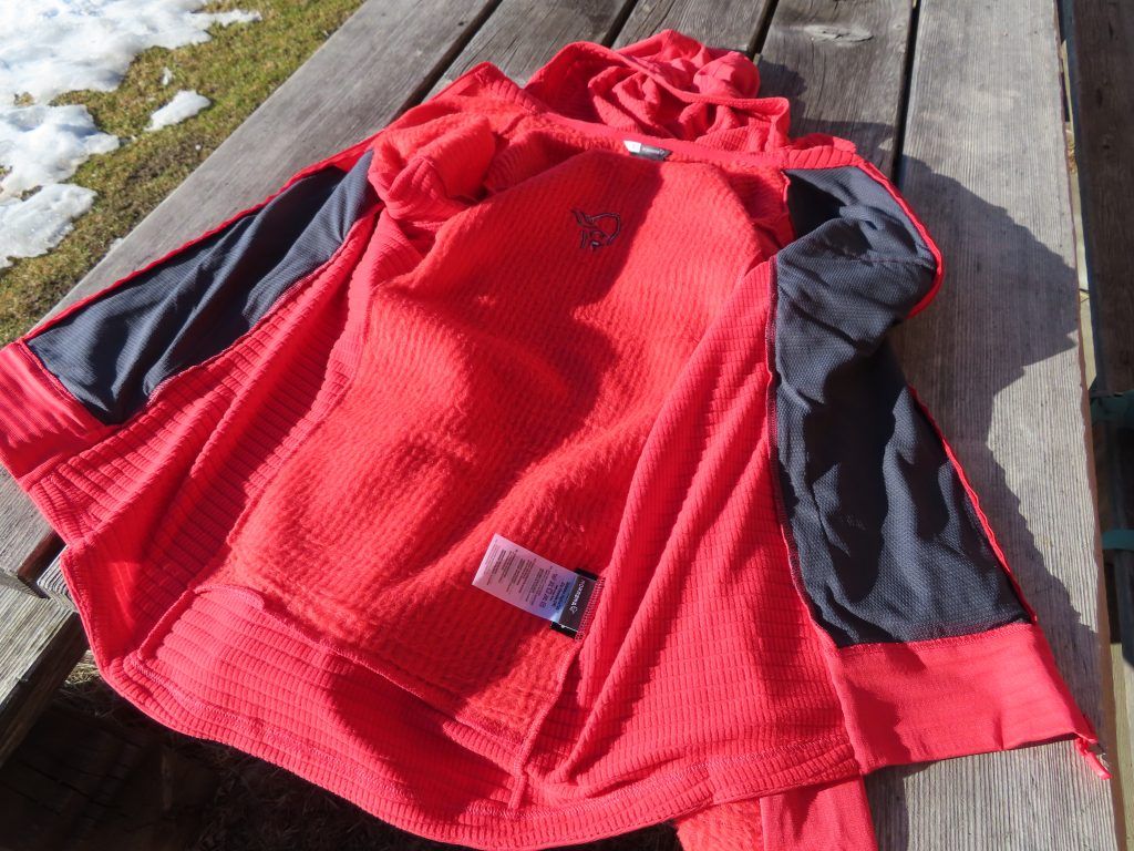 Als zweites Material kommt beim Norrøna lofoten Alpha120 Zip Hoodie Polartec Power Grid zum Einsatz und zwar in Einsätzen an den Seiten, den Armunterseiten, der Kapuze und den Bündchen. Polartec Power Grid hat an der Innenseite etwas dickere Mikrofasern in Wabenform und aussen eine glatte Oberfläche mit feineren Mikrofasern.
