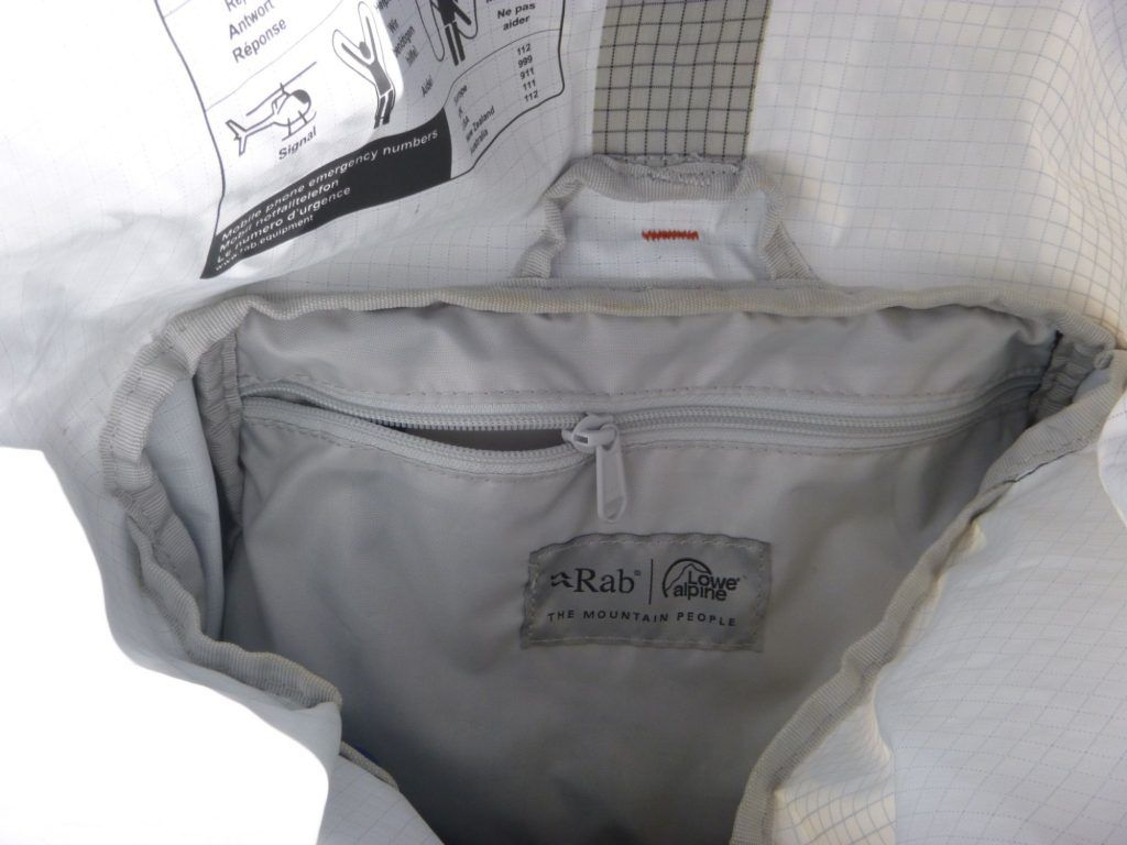Ich konnte den Rucksack auf verschiedenen, rauhen Touren testen, er erfüllt seinen Zweck absolut. Minimalistisch gehalten, kann man durch demontieren der kleinen Extras sogar noch ein paar Gramm sparen, ist aber eigentlich nicht nötig. Das klassische Rolltop muss man mögen, oder eben nicht. Auf jeden Fall ist es schnell auf und zu und wasserdicht. Ist der Rab Latok 28 nicht gut gefüllt, leidet die Optik allerdings etwas, und ein zusätzlicher Reissverschluss würde die Füllgrösse allenfalls gegen oben noch etwas erweiteren. Abgesehen vom Hauptfach findet man im Innern das Einschubfach für den demontierbaren Rückenschaum und ein kleines Reissverschlussfach für Schlüssel / Dokumente etc.