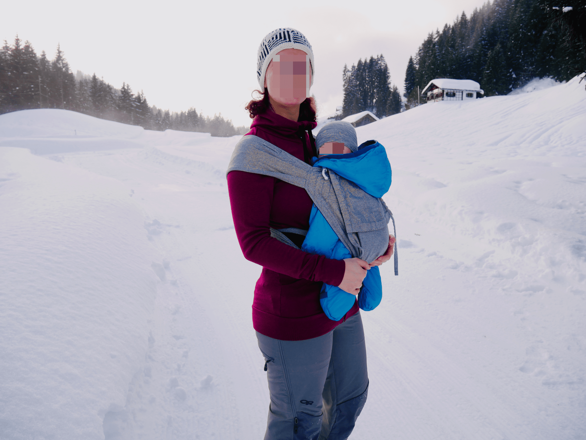 Auch dein Kinderwagen oder deine Trage sollten winterfest sein. Gerade in den ersten Monaten bevorzuge ich persönlich eine Trage, da dein Baby so ganz nah bei dir ist und ihr euch gegenseitig wärmt. Ausserdem bekommt dein Kleiner viel mehr von der Umgebung mit und fühlt sich sicher und geborgen.