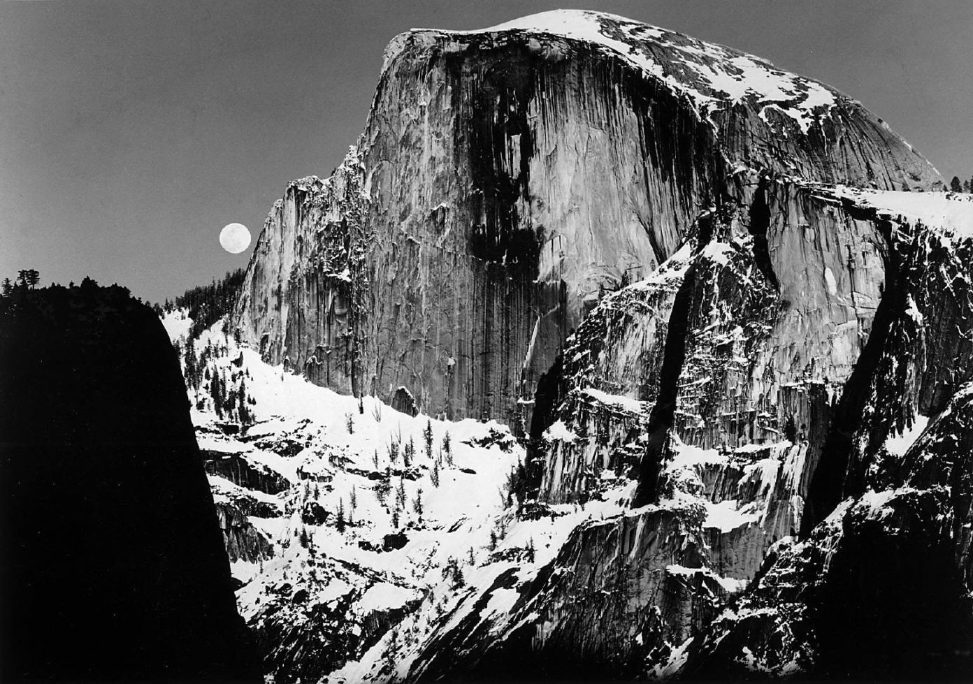 Ansel Adams ist bei allen Outdoor-Fotografen eine bekannte Grösse. Seine Geschichte beginnt, als der damals 14-jährige für die Reise in den Yosemite Nationalpark eine etwas sperrige, rechteckige Box von seinem Vater bekam, in der ein Objektiv steckt. Wenn man den Auslöser drückt, lässt sich ein Film belichten, von dem man mit einigen Zaubertricken in der Dunkelkammer Bilder auf Papier bringen konnte – es handelt sich hierbei um eine der ersten Kompaktkameras. Ansel Adams war begeistert und begann, alles festzuhalten, was ihm draussen vor die Linse kam. Der Tag, der Ansel Adams Leben für immer verändern sollte, war der 17. April 1927: Er wanderte mit seiner zukünftigen Frau Virginia und drei Freunden zum Diving Board, einem Felsvorsprung mit imponierendem Blick auf das Felsmassiv des legendären Half Dome. Im Rucksack schleppte er seine 40 Pfund schwere Kameraausrüstung mit. Einige seiner Aufnahmen misslangen, doch dann gelang ihm ein Foto, das, wie er später sagte, «den grossartigsten Anblick, den die Sierra bietet» zeigt: das «Face of Half Dome».
