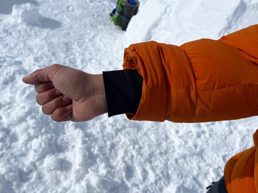 Die Jacke ist sehr warm. Die Kombination aus Daunen und Polyester-Isolierung schützt zuverlässig – auch bei zweistelligen Minusgraden. Besonders angenehm ist der Schnitt. Ich konnte mich jederzeit gut bewegen. Der 4-Wege-Stretch macht einen echten Unterschied. Ob beim Sichern oder beim Kochen im Iglu: Nichts hat gezwickt oder eingeschränkt.