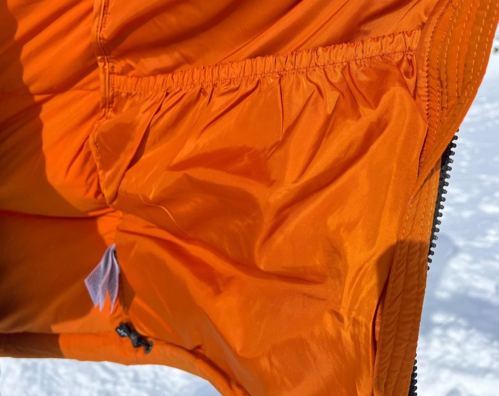 Was mir besonders gefallen hat: die Taschen. Die zwei grossen Innentaschen aus Stretch sind ideal für Handschuhe oder Mützen. Die Aussen- und Brusttaschen bieten ebenfalls genug Platz. Die Handgamaschen an den Ärmeln halten die Wärme dort, wo sie bleiben soll. Auch der hohe Kragen und die gut verstellbare Kapuze schützen effektiv gegen Wind und Schnee.