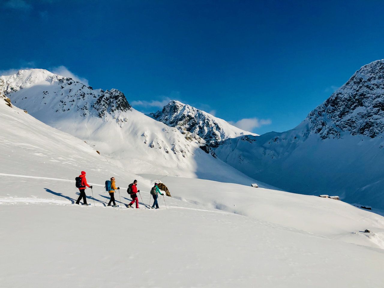 Eine Schneeschuhtour mit allem drum und dran: Ein gemütlicher erster Tag, ein Gipfel an Neujahr und viel Aussicht auch am dritten Tag mit einer Schlittenfahrt zum Abschluss. Dazu eine gemütliche Unterkunft mit gutem Essen.