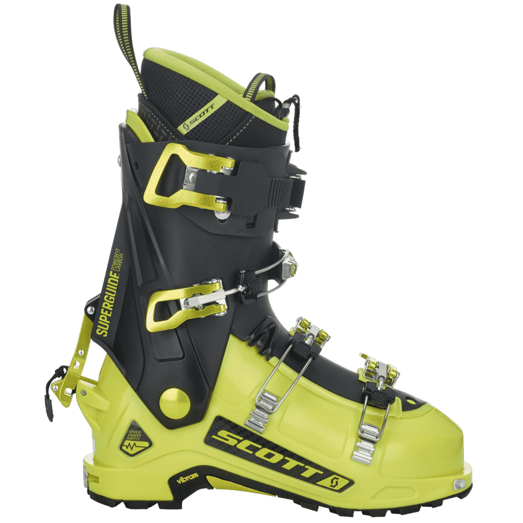 Der leichte Superguide Carbon bietet bergauf Bewegungsfreiheit sowie Komfort und bergab eine solide, präzise Stabilität – ideal fürs Freetouring. Die rückseitige Ski-/Gehfunktion-Schnalle ist leicht bedienbar, zuverlässig und sicher. Das System garantiert eine leistungsstarke, reibungsfreie Energieübertragung beim Gehen und Fahren. Der neue Schnallenverschluss ermöglicht einfaches und schnelles Einstellen der Manschette. Die Die Carbon-Konstruktion mit einem Flex-Index von 125 sorgt für mehr Unterstützung, Stabilität und Kraft ohne Kompromisse beim Gewicht einzugehen. Die Vibram-Sohle mit Bi-Density-Gummi eignet sich auch für Kletterpassagen.