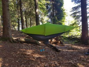 Das flying tent ist ein Multitalent: Als Hängematte, Hängemattenzelt, kompaktes Zelt oder Poncho nutzbar. Das Produkt ist ausgereift und besticht durch ein rasches Setup. Einziger Wehrmutstropfen ist das relativ hohe Gewicht für eine 1-Personen-Lösung.
