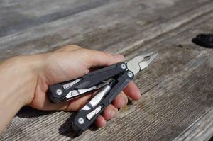 Das Gerber Crucial Multi-Tool ist eine gelungene Kombination aus Multitool und vollwertigem Einhandmesser! Neben der kräftigen Zange mit V-Cut-Drahtschneider bietet das Tool vier aussenliegende Werkzeuge wie die arretierbare Messerklinge mit Wellenschliff, einen Flaschenöffner mit integriertem Karabinerhaken sowie einen Längsschlitz- und einen Kreuzschlitz-Schraubendreher. Ein Gürtelclip macht das gut durchdachte Mulitool komplett. Praktisch!