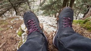 Die Black Diamond Circuit Approach Shoes überraschen positiv. Die ultraleichten sportlichen Schuhe sind nicht nur fashionable und für die Stadt geeignet, sie halten tatsächlich auch auf schmalen Pfaden mit etwas Fels, Wurzeln und trockenem Laub, was die rutschfeste Sohle aus BlackLabel-Street-Gummi verspricht. Geeignet, um auch im relativ unwegsamen Gelände zum Kletterausgangspunkt zu gelangen. Mit der nötigen Vorsicht natürlich, da die Schuhe nicht über den Knöchel reichen und das Strickmaterial zwar Schwitzen verhindert, aber nicht allzuviel Halt bietet.