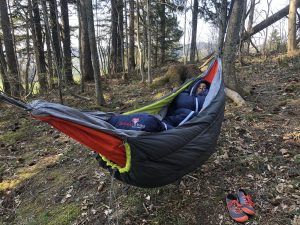 Eine Nacht in einer Hängematte bei Temperaturen um den Gefrierpunkt gehört wohl nicht zu jedermanns Wunschträumen. Mit dem ENO Blaze UnderQuilt sollte sich das aber ändern. Die Daunenhülle ist einfach zu montieren und hält die ganze Nacht fein warm, sodass man den Wintersternenhimmel live und trotzdem warm geniessen kann.