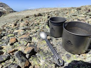Die MSR Titan Tasse ist eine robuste, leichte Tasse aus Titan mit praktischer Volumenskala und klappbaren Griffen – perfekt für Outdoor-Abenteuer.