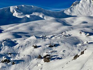 Diese kurze, einfache Skitour St. Antönien ist sehr beliebt. Kein Wunder: Der Aufstieg ist einfach und man hat eine tolle Panoramasicht über das Prättigau. Und da es viele verschiedene Abfahrtsrouten gibt, kann man trotz der grossen Beliebtheit einen unverfahrenen Hang für eine herrliche Abfahrt finden. Für Einsteiger:innen ist die Tour aufs Chrüz eine perfekte Schnuppertour.